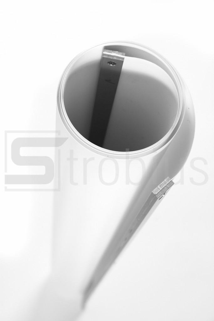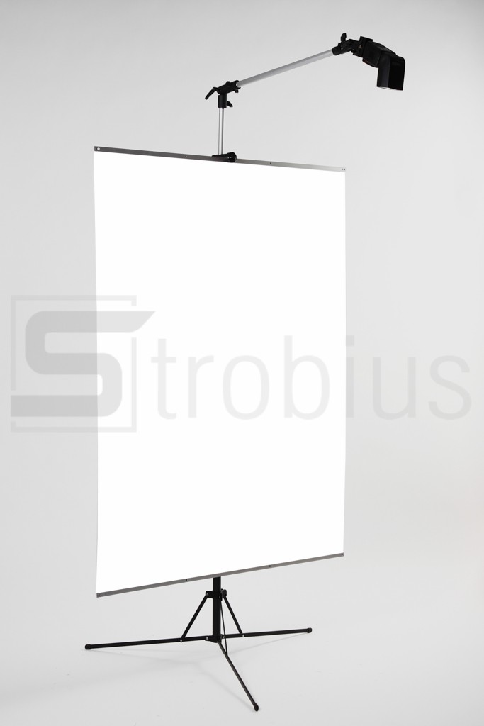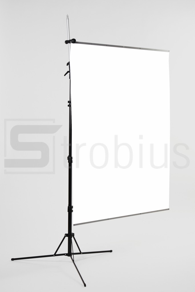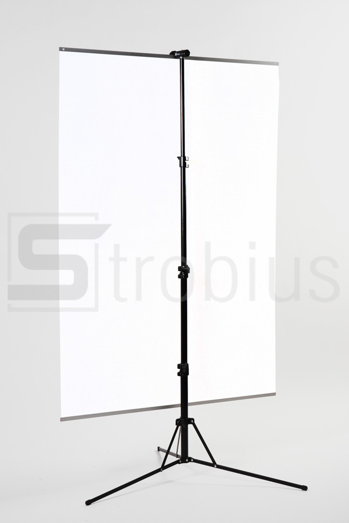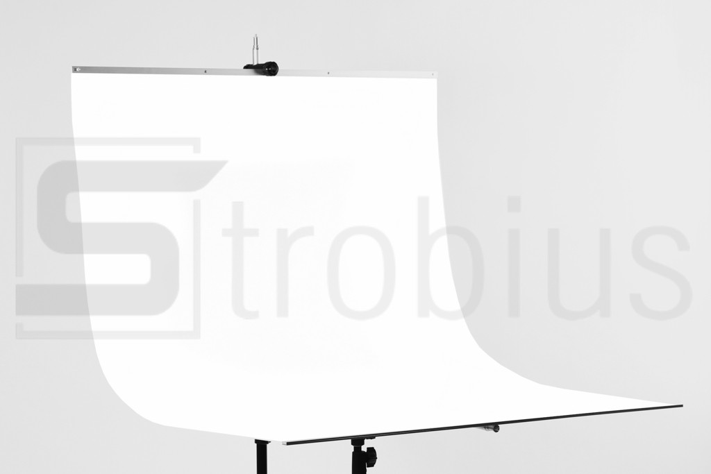 Белый пластиковый фон Strobius изготовлен из полистирола по краям которого установлены алюминиевые стрингеры, которые позволяют держать форму и так же фиксировать фон в различном положении при помощи специальных держателей.