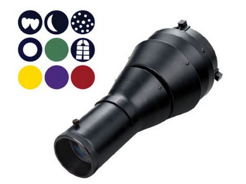 Оптический тубус Mircopro MS-550 Данная светоформирующая насадка предназначена для создания различных световых эффектов и проэкций на фон или обьект. В комплект входят 5 масок и набор цветных фильтров. Линзовая система позволяет регулировать степень размытия границ проэктируемых рисунков. - Дополнительная информация
