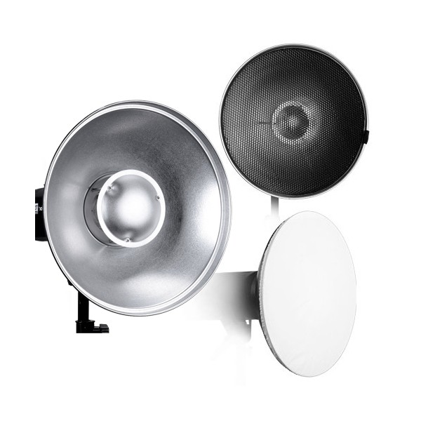 Портретная тарелка с сотами Arsenal 410мм или как еще еe называют Beauty dish (Бьюти диш) дает мягкий и равномерный по полю, но направленный свет. Свет от портретной тарелки очень хорошо прорабатывает структуру кожи и создает характерный светотеневой рисунок.