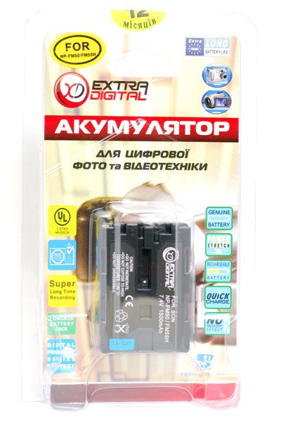 Литий ионный аккумулятор EXTRA DIGITAL NP-FM50, QM51, FM55H идеально подходит для фотокамер и видеокамер Sony: CCD-TR108, CCD-TR208, CCD-TR408, CCD-TR748, CCD-TR748E, CCD-TRV106K, CCD-TRV107, CCD-TRV108, CCD-TRV108E, CCD-TRV116, CCD-TRV118, CCD-TRV126, CCD-TRV128, CCD-TRV138, CCD-TRV208, CCD-TRV208E, CCD-TRV218, CCD-TRV218E, CCD-TRV228, CCD-TRV228E, CCD-TRV238, CCD-TRV238E, CCD-TRV308, CCD-TRV318, CCD-TRV328, CCD-TRV338, CCD-TRV408, CCD-TRV408E, CCD-TRV418, CCD-TRV418E, CCD-TRV428, CCD-TRV428E, CCD-TRV438E, CCD-TRV608, CCD-TRV730, CCD-TRV740, CCD-TRV96K, DCR-DVD100, DCR-DVD100E, DCR-DVD101, DCR-DVD101E, DCR-DVD200, DCR-DVD200E, DCR-DVD201, DCR-DVD201E, DCR-DVD300, DCR-DVD301, DCR-DVD91, DCR-DVD91E, DCR-HC1, DCR-HC14, DCR-HC14E, DCR-HC15, DCR-HC15E, DCR-HC88, DCR-PC100, DCR-PC101, DCR-PC101E, DCR-PC101K, DCR-PC103, DCR-PC103E, DCR-PC104, DCR-PC104E, DCR-PC105, DCR-PC105E, DCR-PC105K, DCR-PC110, DCR-PC110E, DCR-PC115, DCR-PC115E, DCR-PC120, DCR-PC120BT, DCR-PC120E, DCR-PC300K, DCR-PC330, DCR-PC330E, DCR-PC6, DCR-PC6E, DCR-PC8, DCR-PC8E, DCR-PC9, DCR-PC9E, DCR-TRV10, DCR-TRV10E, DCR-TRV11, DCR-TRV116, DCR-TRV116E, DCR-TRV118E, DCR-TRV11E, DCR-TRV12E, DCR-TRV14, DCR-TRV140, DCR-TRV140E, DCR-TRV140U, DCR-TRV145, DCR-TRV145E, DCR-TRV14E, DCR-TRV15, DCR-TRV150, DCR-TRV15E, DCR-TRV16, DCR-TRV16E, DCR-TRV17, DCR-TRV17E, DCR-TRV17K, DCR-TRV18, DCR-TRV18E, DCR-RV18K, DCR-TRV19, DCR-TRV19E, DCR-TRV20, DCR-TRV20E, DCR-TRV22, DCR-TRV22E, DCR-TRV22K, DCR-TRV230, DCR-TRV230E, DCR-TRV235, DCR-TRV235E, DCR-TRV238, DCR-TRV238E, DCR-TRV239, DCR-TRV239E, DCR-TRV24, DCR-TRV240, DCR-TRV240E, DCR-TRV240K, DCR-TRV245, DCR-TRV245E, DCR-TRV24E, DCR-TRV25, DCR-TRV250, DCR-TRV250E, DCR-TRV255, DCR-TRV255E, DCR-TRV25E, DCR-TRV260, DCR-TRV265, DCR-TRV265E, DCR-TRV27, DCR-TRV270E, DCR-TRV27E, DCR-TRV280, DCR-TRV285E, DCR-TRV30, DCR-TRV300K, DCR-TRV30E, DCR-TRV325, DCR-TRV33, DCR-TRV330, DCR-TRV330E, DCR-TRV33E, DCR-TRV33K, DCR-TRV340, DCR-TRV340E, DCR-TRV345, DCR-TRV345E, DCR-TRV350, DCR-TRV351, DCR-TRV355, DCR-TRV355E, DCR-TRV360, DCR-TRV361, DCR-TRV38, DCR-TRV39, DCR-TRV40, DCR-TRV40E, DCR-TRV430, DCR-TRV430E, DCR-TRV460, DCR-TRV460E, DCR-TRV480, DCR-TRV480E, DCR-TRV50, DCR-TRV50E, DCR-TRV530, DCR-TRV530E, DCR-TRV6, DCR-TRV60, DCR-TRV60E, DCR-TRV6E, DCR-TRV70, DCR-TRV70K, DCR-TRV725, DCR-TRV730, DCR-TRV730E, DCR-TRV738, DCR-TRV738E, DCR-TRV740, DCR-TRV740E, DCR-TRV75, DCR-TRV75E, DCR-TRV8, DCR-TRV80, DCR-TRV80E, DCR-TRV828, DCR-TRV828E, DCR-TRV830, DCR-TRV830E, DCR-TRV840, DCR-TRV8K, DCR-TRV940, DCR-TRV940E, DCR-TRV950, DCR-TRV950E, DCR-TV480, DSR-PDX10, GV-D1000 (Video Walkman), HDR-HC1, HDR-HC1E, HDR-SR1, HDR-SR1e, HDR-UX1, HDR-UX1e, HVL-IRM (Infrared Light), HVL-ML20M (Underwater Video Light), MVC-CD200, MVC-CD250, MVC-CD300, MVC-CD350, MVC-CD400, MVC-CD500, DSR-PDX10P, HVR-A1, HVR-A1E, HVR-A1J, HVR-A1N, HVR-A1P, HVR-A1U.