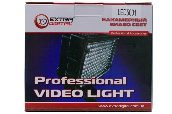 Накамерный свет Extra Digital LED-5001 выполнен в форме панели. Также на корпусе имеется колёсико-регулятор плавной регулировки силы света с выключателем. Extra Digital LED-5001 устанавливается в стандартный горячий башмак фото- или видеокамеры, а при его отсутствии на кронштейн с резьбой 1/4.