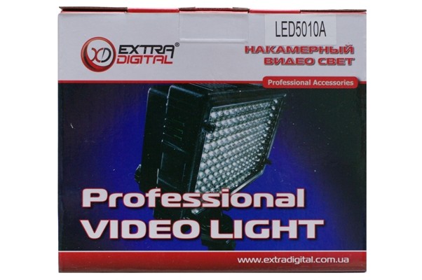 Светодиодный накамерный свет Extra Digital LED-5010A  предназначен для использования с  видеокамерами и цифровыми фотокамерами Sony, Panasonic, Canon, Samsung, Nikon, Hitachi. Набор из ярких светодиодов обеспечивают мощный световой поток с цветовой температурой 3000-3500K, 5000-6000 K.