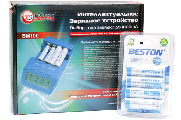 Данное зарядное устройство ExtraDigital BM100 Blue поставляется с комплектом аккумуляторов AA 2700 mAh Beston !!!
