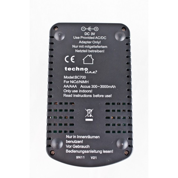 Интеллектуальное зарядное устройство Technoline BC-700 имеет множество функций, таких как: "тест", "заряд", "разряд", "востановление старых аккумуляторов". Предназначено для аккумуляторных батарей Ni-MH, Ni-Cd типоразмера AA и AAA. Позволяет одновременно заряжать Ni-MH и Ni-Cd аккумуляторы формата AA или AAA разной емкости, благодаря четырем независимым каналам зарядки.