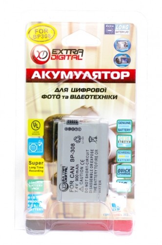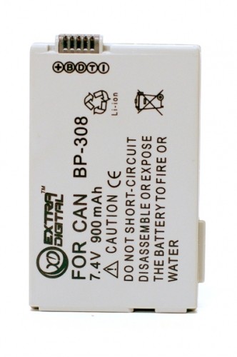 Аккумуляторная батарея EXTRA DIGITAL BP-308B - это достойная замена оригинальных аккумуляторов Canon BP-308, BP-308B, BP-308S.