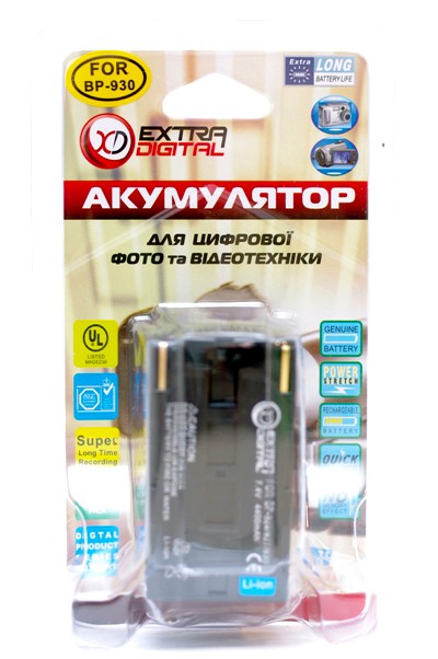 Аккумулятор EXTRA DIGITAL BP-925 для Canon (аналог Canon BP-911, BP-911K, BP-914 BP-915, BP-924, BP-925, BP-927, BP-930, BP-930E, BP-930R) - литиево-ионная батарея предназначена для фотокамер и видеокамер. Данный аккумулятор обеспечивает надежную, стабильную и бесперебойную работу фото и видео аппаратуры. Основными преимуществами аккумулятора EXTRA DIGITAL BP-925 есть высокая энергетическая плотность, длительный уровень заряда, низкий уровень саморазряда, даже при длительной эксплуатации, отсутствие «эффекта памяти заряда аккумулятора» и способность быстрого заряда батареи.