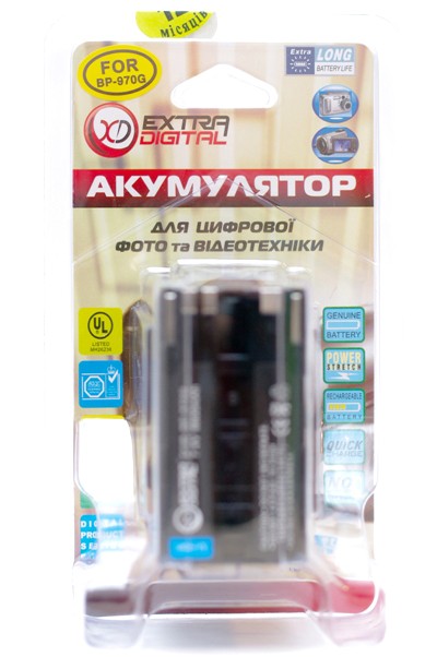 Аккумулятор EXTRA DIGITAL BP-970 для Canon - литиево-ионная батарея предназначена для фотокамер и видеокамер. Данный аккумулятор обеспечивает надежную, стабильную и бесперебойную работу фото и видео аппаратуры. Основными преимуществами аккумулятора EXTRA DIGITAL BP-970 есть высокая энергетическая плотность, длительный уровень заряда, низкий уровень саморазряда, даже при длительной эксплуатации, отсутствие «эффекта памяти заряда аккумулятора» и способность быстрого заряда батареи.