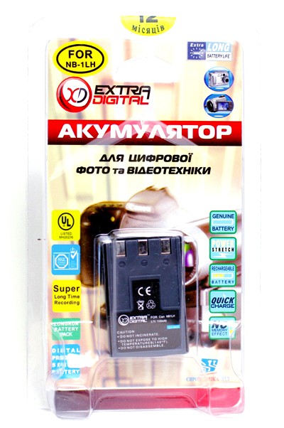 Аккумуляторная батарея EXTRA DIGITAL NB-1LH - это достойная замена оригинальных аккумуляторов Canon NB-1LH, NB-1L.