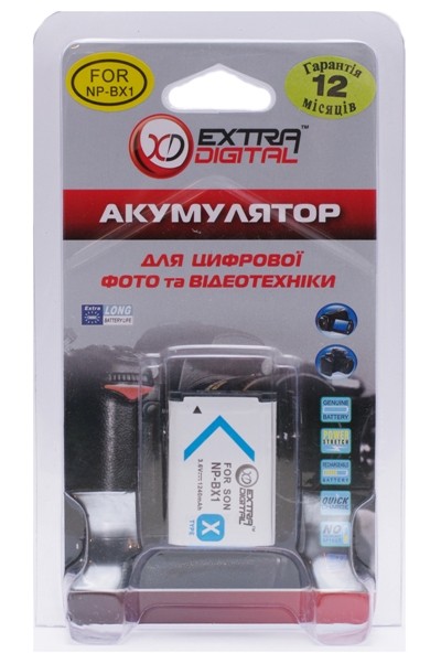 Аккумулятор EXTRA DIGITAL NP-BX1 для Sony (аналог Sony NP-BX1) - литиево-ионная батарея предназначена для фотокамер и видеокамер. Данный аккумулятор обеспечивает надежную, стабильную и бесперебойную работу фото и видео аппаратуры. Основными преимуществами аккумулятора EXTRA DIGITAL NP-BX1 есть высокая энергетическая плотность, длительный уровень заряда, низкий уровень саморазряда, даже при длительной эксплуатации, отсутствие «эффекта памяти заряда аккумулятора» и способность быстрого заряда батареи.