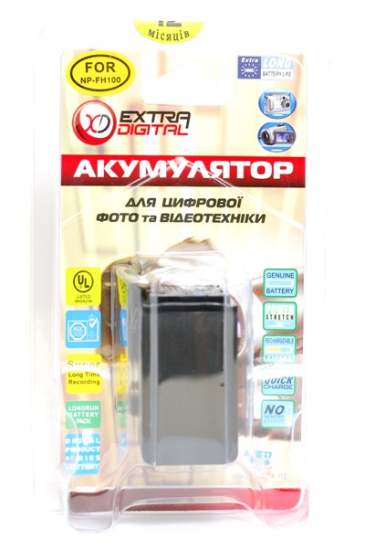 Аккумуляторная батарея EXTRA DIGITAL NP-FH100 - это достойная замена оригинальных аккумуляторов Sony NP-FH30, NP-FH40, NP-FH50, NP-FH60, NP-FH70, NP-FH100.