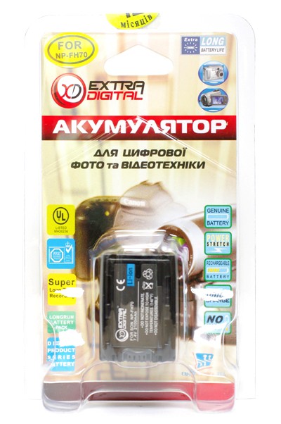 Аккумуляторная батарея EXTRA DIGITAL NP-FH70 - это достойная замена оригинальных аккумуляторов Sony NP-FH30, NP-FH40, NP-FH50, NP-FH60, NP-FH70.