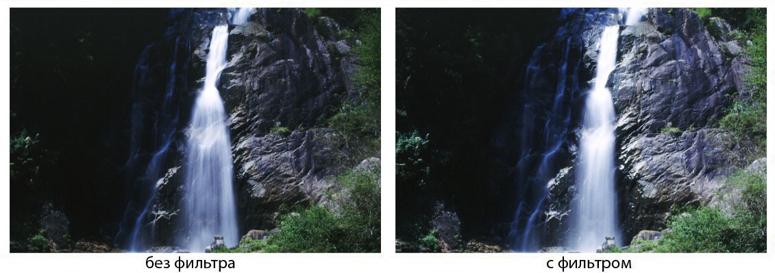 При съемке в дневное время , на длительных выдержках с использованием светофильтра Marumi ND4X статичные объекты получаются резкими, а движущиеся – размытыми. Отличный результат дает при съемке водопадов и быстрых горных рек.