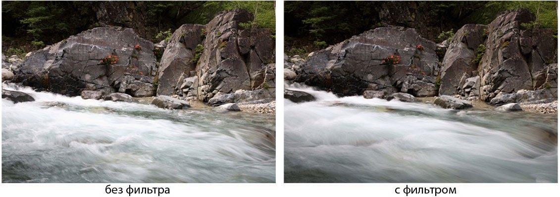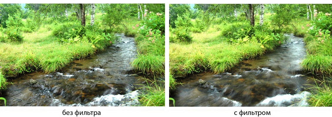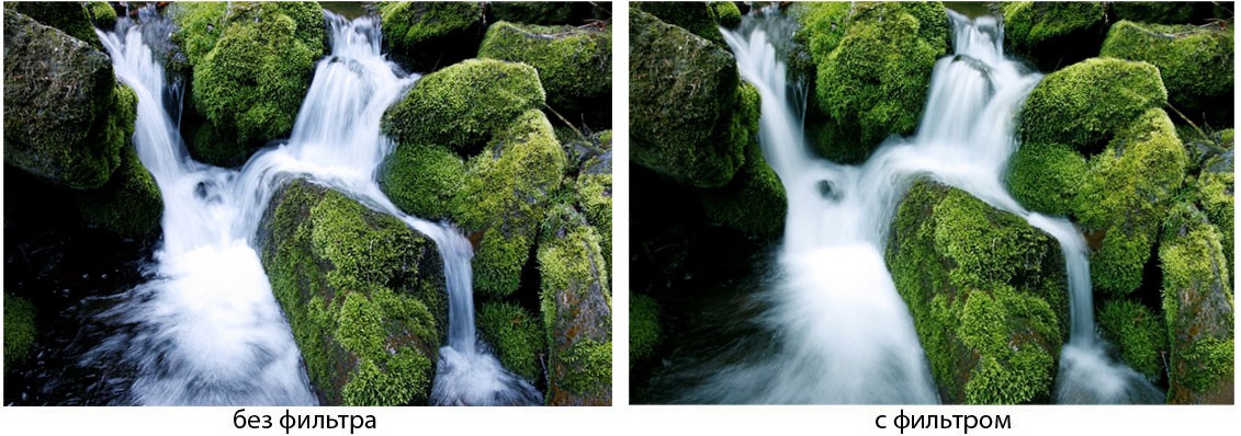 Этот светофильтр дает хорошие результаты при сьемках бурлящей воды (водопадов, горных рек), пейзажей и портретов.