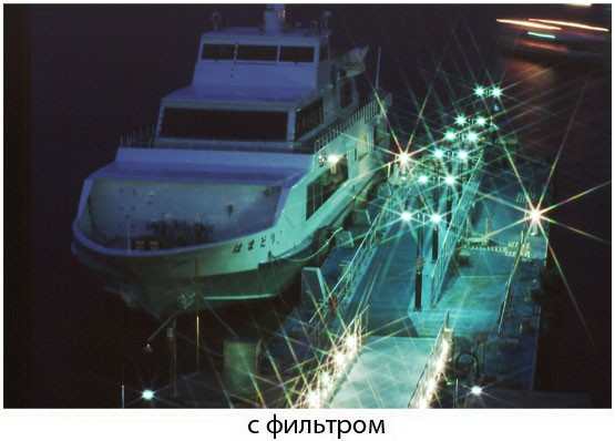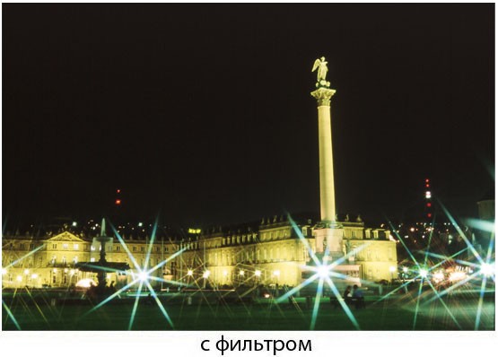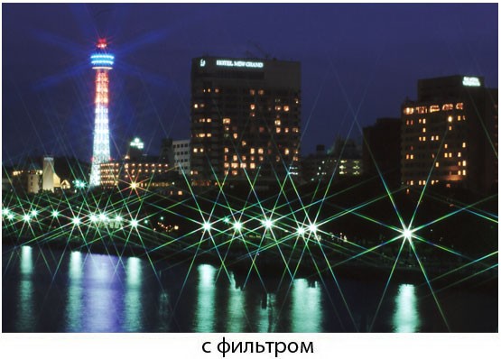 На поверхности стекла светофильтра Marumi 8X-Cross 72мм нанесены миниатюрные насечки, которые и украшают каждый источник света в кадре восьмью лучами.