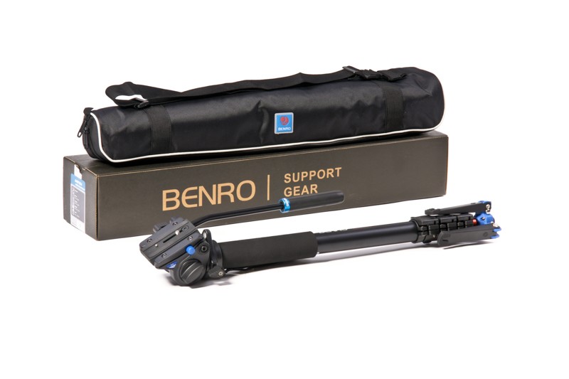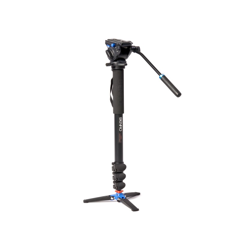 Монопод Benro A48FDS4 оснащен съемной видеоголовкой Benro S4, которая регулируется в трех плоскостях, съемной площадкой-башмаком для быстрого снятия фото-видеотехники с монопода и пузырьковым уровнем для быстрой и точной юстировки. Ножка монопода состоит из четырех секций которые позволяют быстро устанавливать его в диапазонах высот от 690 до 1860мм. Фиксации ножек происходит при помощи специальных боковых защелок. На крайней ножке прикреплена специальная тринога для большей устойчивости монопода. При транспортировке лапкт для большего удобства складываются. Также для удобства в использовании в верхней части монопода закреплена мягкая неопреновая накладка и кистевой ремешок.