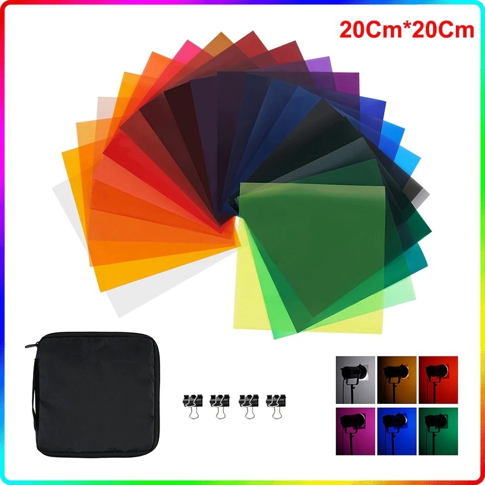 Набор состоит из 20шт наиболее часто используемых цветных гелевых фильтров LightStuff для создания различных цветовых эффектов:
